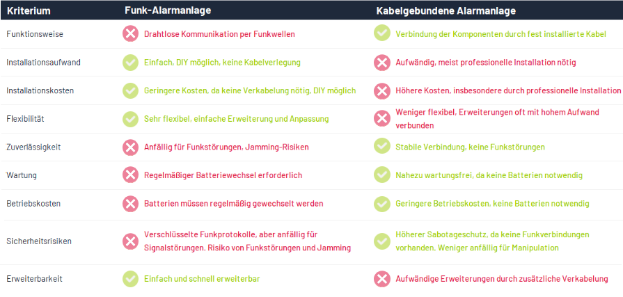 Die Wahl zwischen einer Funk-Alarmanlage und einer kabelgebundenen Alarmanlage hängt von verschiedenen Faktoren ab. Funk-Alarmanlagen sind ideal, wenn Sie eine flexible, einfach zu installierende Lösung suchen. Sie eignen sich hervorragend für Mietwohnungen, ältere Gebäude oder wenn eine nachträgliche Installation ohne großen Aufwand gewünscht ist. Auch für Menschen, die ihr System regelmäßig anpassen oder erweitern möchten, sind Funk-Systeme eine gute Wahl.