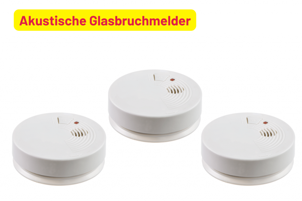 Hier finden Sie eine Produktübersicht von akustischen Glasbruchmeldern bei Amazon. Auch sie sind für etwa 20 – 30 Euro erhältlich und werden oft in 2er oder 4er-Packs angeboten *